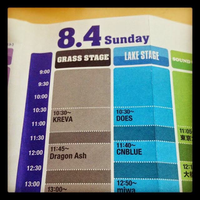 Hoy es 3 de Agosto en Japón, mañana CNBLUE se estará presentando en el Rock in Japan 2013 en la zona Lake Stage a las 11:40 am.